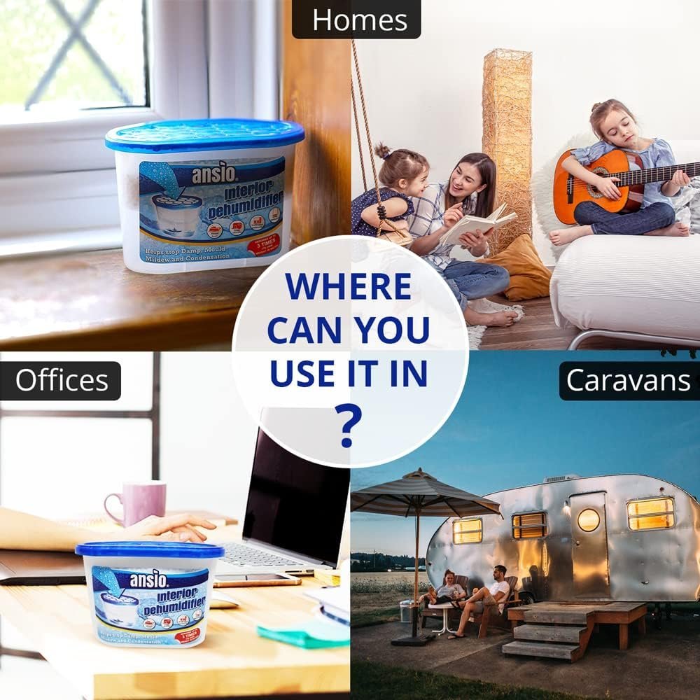ANSIO Dehumidifier Disposable Pack of 10 Room Moisture Absorber Condensation Remover De Humidifiers for Damp. Mould in Home. Bathroom. Window. House. Kitchen. Wardrobe. Bedroom Interior Moisture Traps