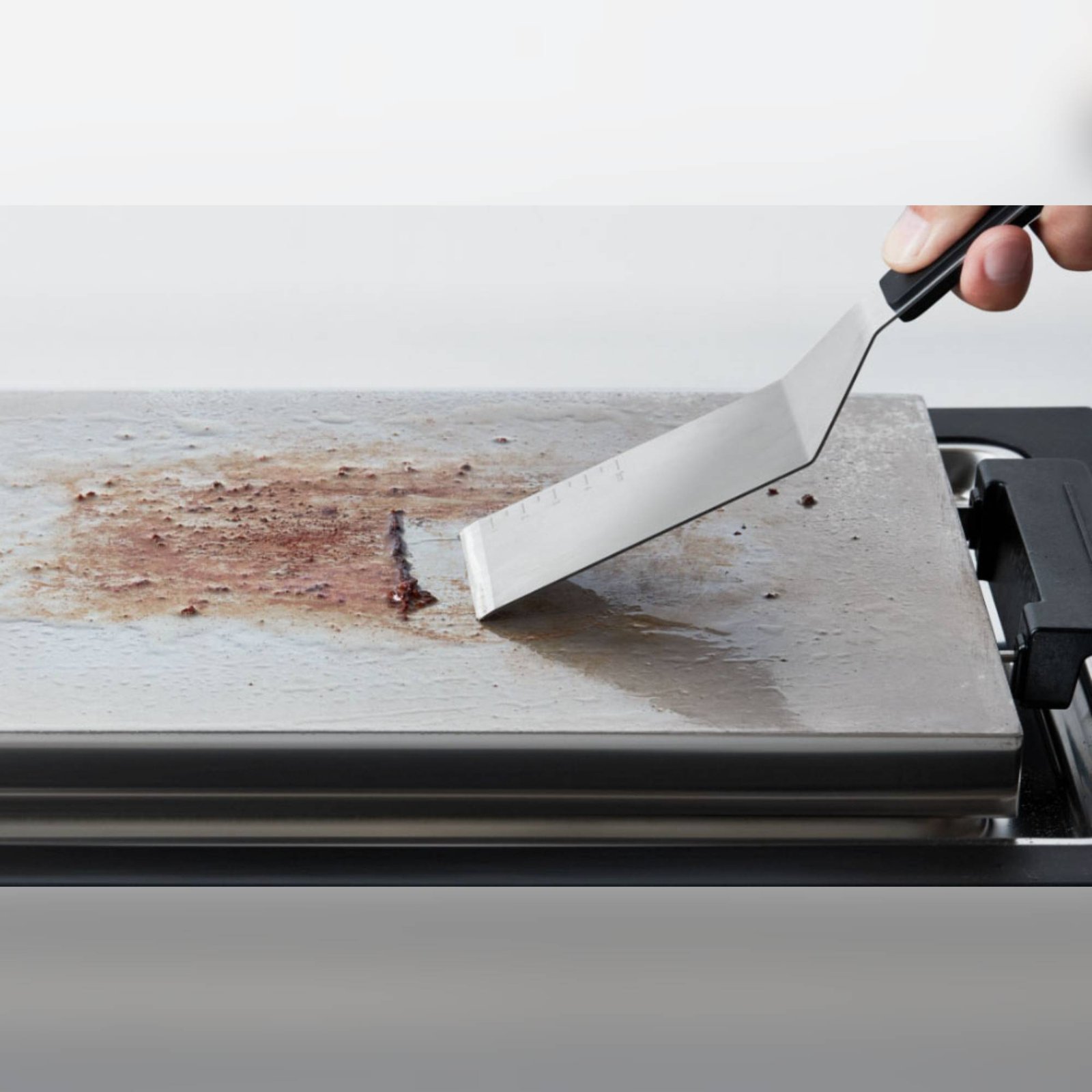 Easy to clean. ready to use: The durable stainless steel surface is easy to maintain—just scrub the plate with a metal brush and wipe down the main unit. The plate’s knife-friendly design allows you to cut directly on it. making cooking and entertaining even easier.