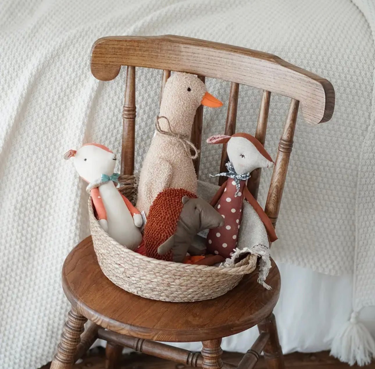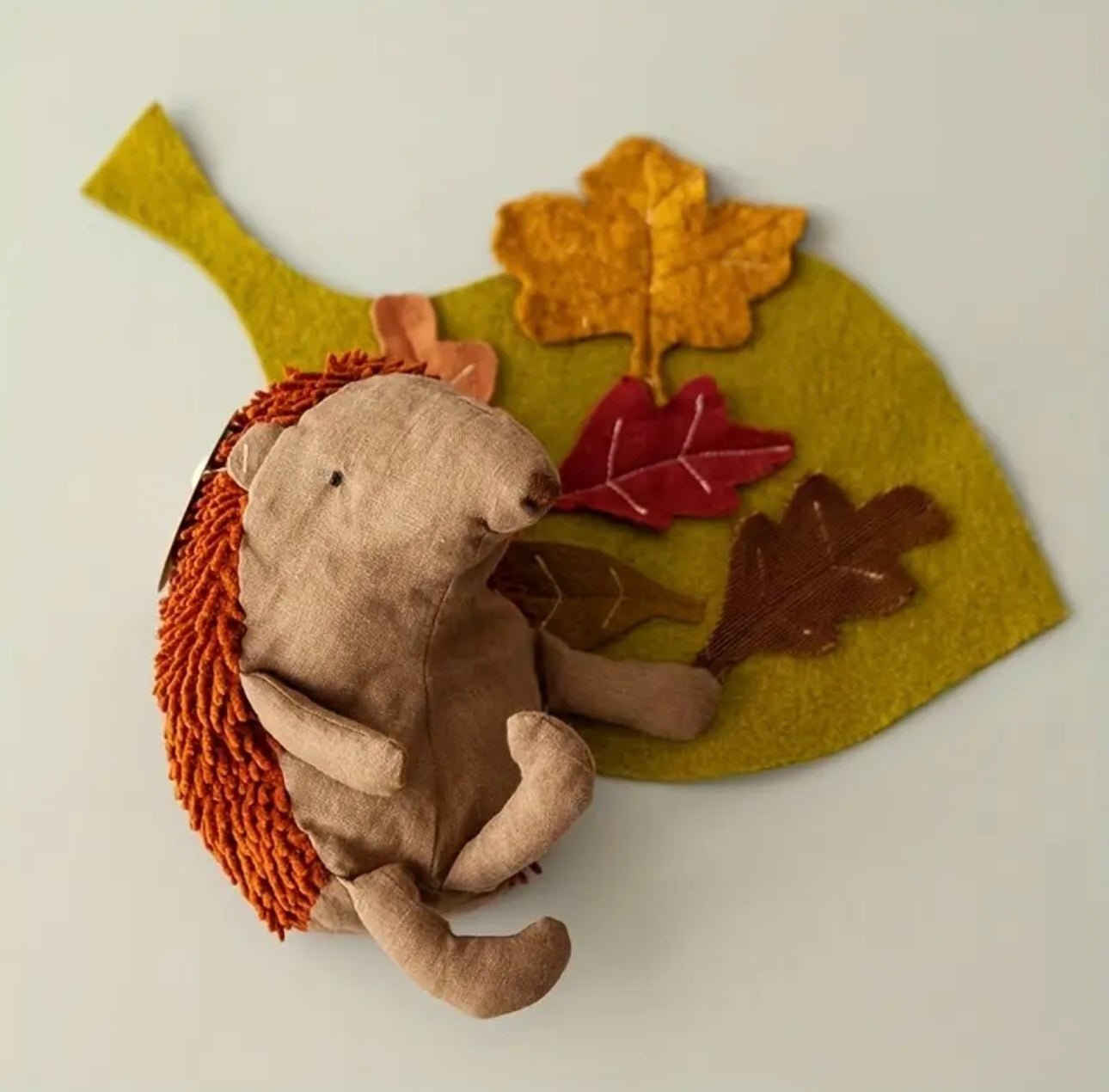 Resting on a felt patch of autumn leaves. Bramble makes the perfect companion for nursery shelves. nature-inspired play. or thoughtful gifting. Whether snuggled at bedtime or admired in a woodland-themed room. Bramble is a timeless treasure ready to be loved.